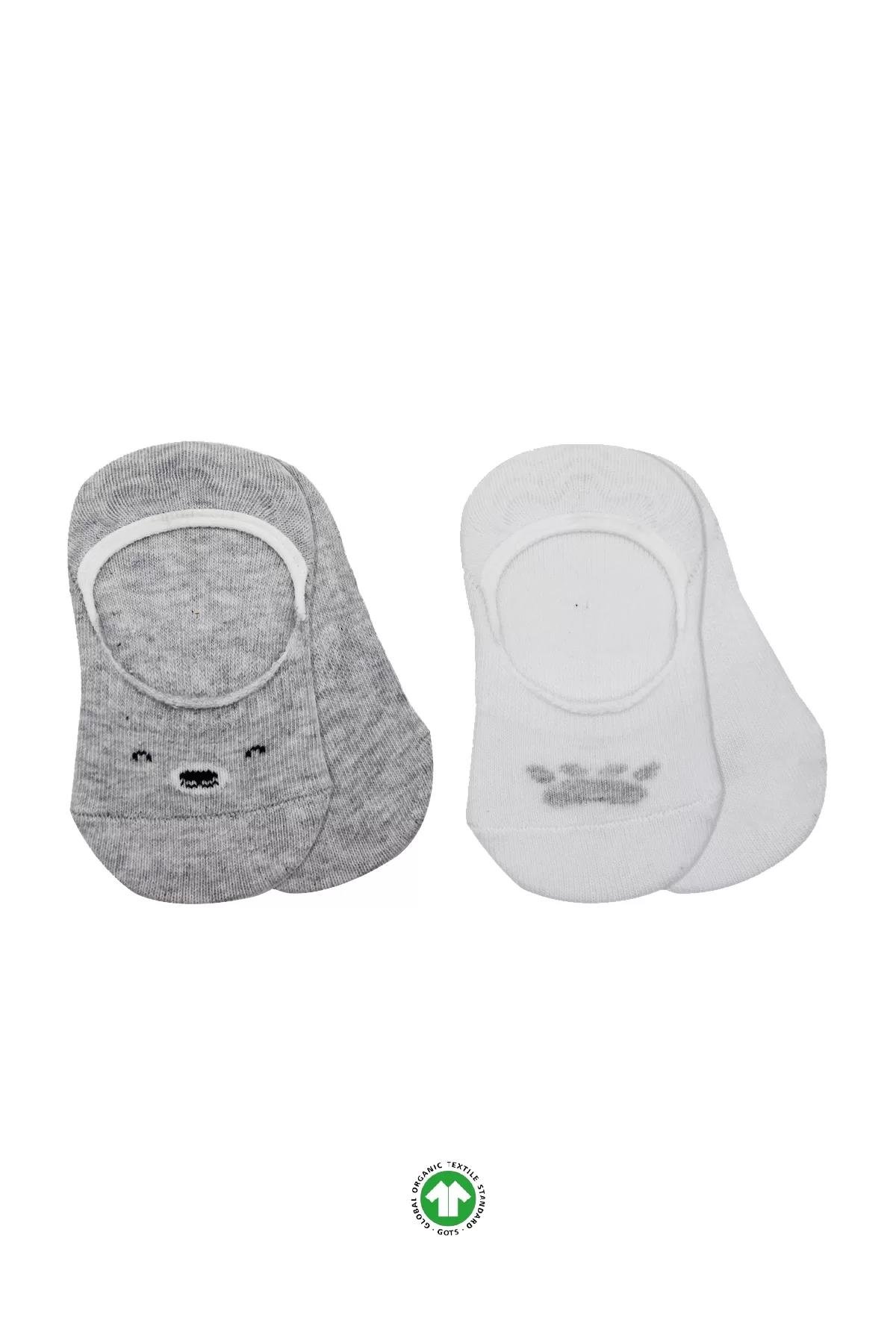 Bistyle 2'li Babet Cute Face Penye Çorap 30103 Gri Beyaz