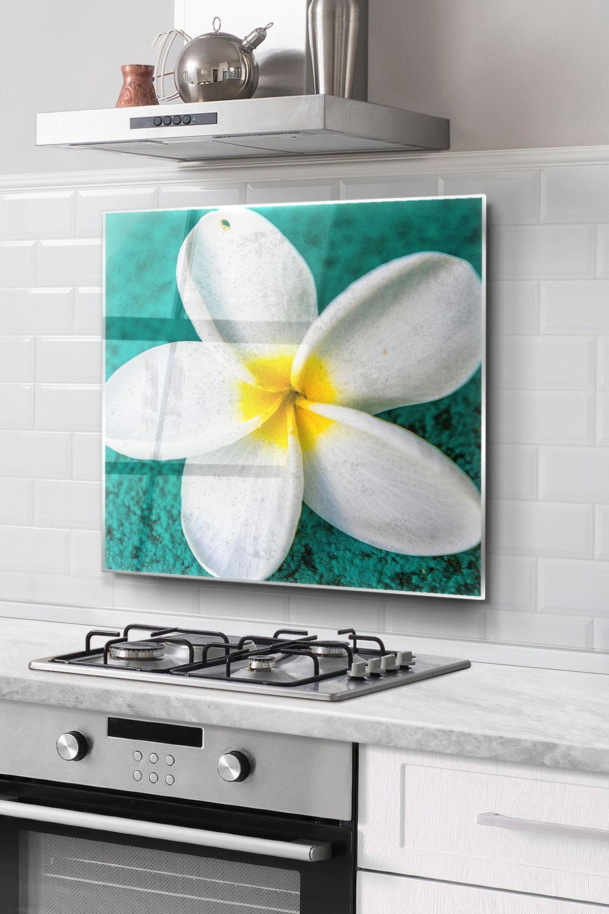 Ocak Arkası Cam Koruyucu Tezgah Ankastre Arkası Koruyucu | Plumeria Çiçek Desenli
