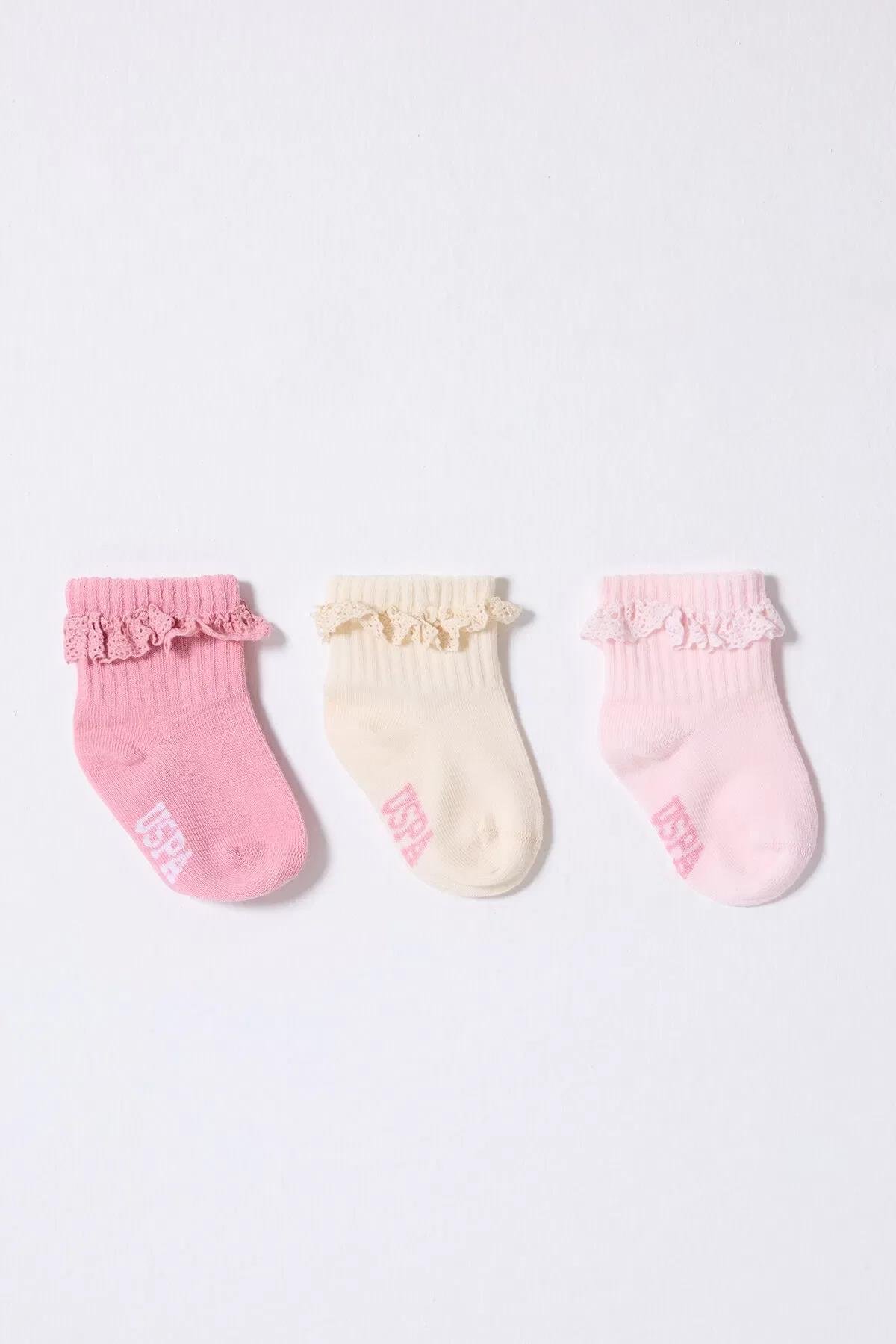 U.s.polo Kız Bebek Çorap Usb2208 Pudra Ekru Somon